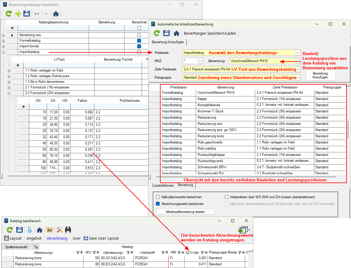 Bewertungskataloge hinterlegt werden. Bewertungskataloge können als Tabellen- oder als Formelkataloge vorliegen. Die Zuordnung der Arbeitszeitwerte zu den Katalogpositionen erfolgt über entsprechende Verknüpfungen.