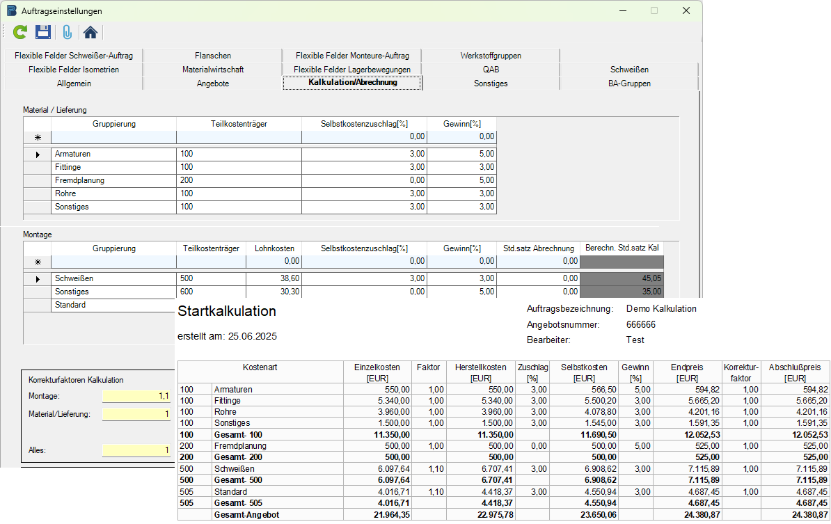 Verschiedene Faktoren erlauben es positions-, isometrie-, auftrags- und preisanteilsbezogene Zu- oder Abschläge einfließen zu lassen.