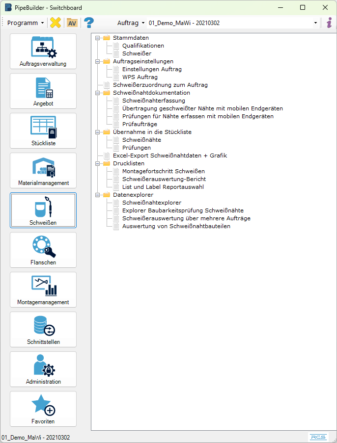 PipeBuilder ist eine Software zur Auftragsabwicklung für den Rohrleitungsbau im industriellen Bereich. Die Software ist so konzipiert, dass sich Projekte mit dem vorhandenem Funktionsumfang vollständig abwickeln lassen und dabei flexibel genug ist, sodass sich Berichte, Auswertungen, Dokumentationen etc. individuell an die Kundenanforderungen anpassen lassen. Der modulare Aufbau von PipeBuilder ermöglicht es nur die Teile der Software einzusetzen, die den Erfordernissen des Kunden entsprechen. Neben der durchgängigen Abwicklung eines Auftrags können die PipeBuilder Module also auch separat genutzt werden.